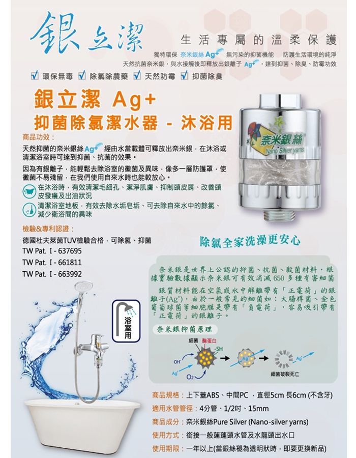 奈米銀絲(Ag+)洗衣球2pcs+抑菌除氯潔水器-浴室用