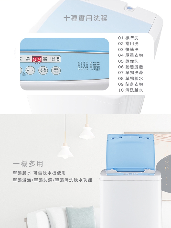 洗滌/脫水容量:4.5 kg
