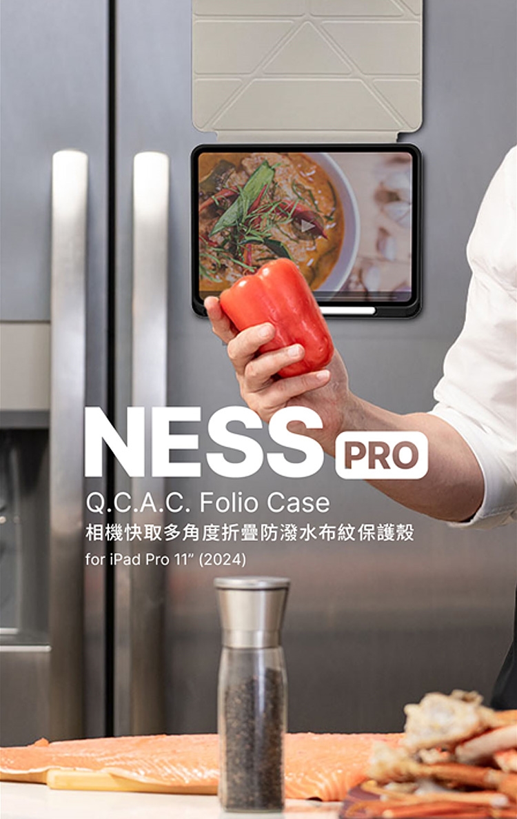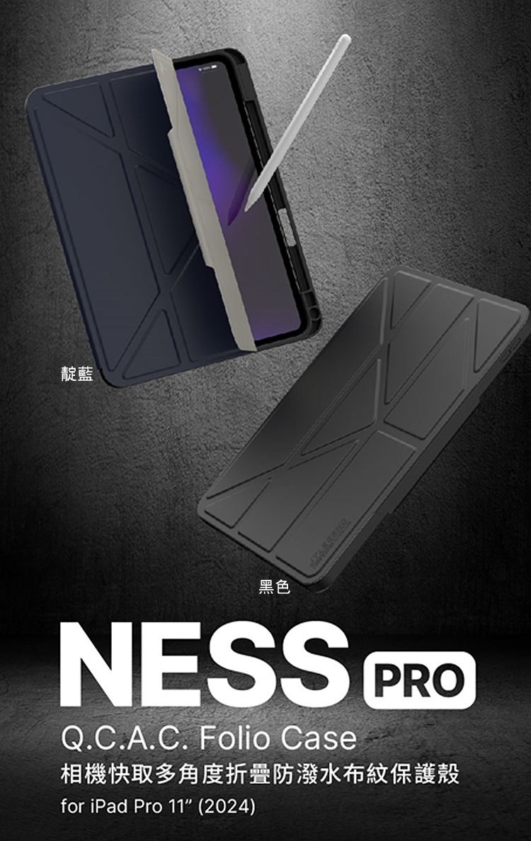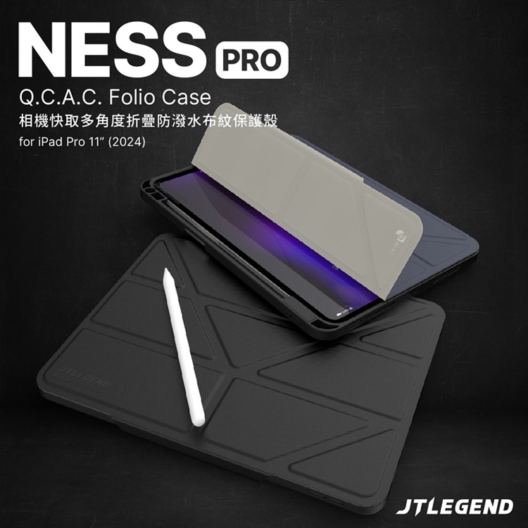 JTLEGEND iPad Pro 11吋 2024 Ness Pro 相機快取多角度折疊防潑水布紋保護殼(含Apple pencil槽+磁扣)