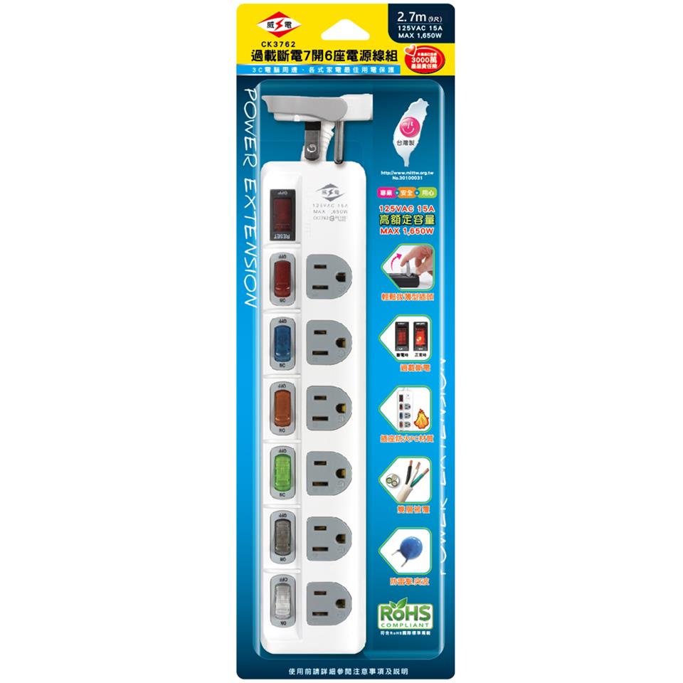 額定容量:125VAC 15A MAX 1,650W