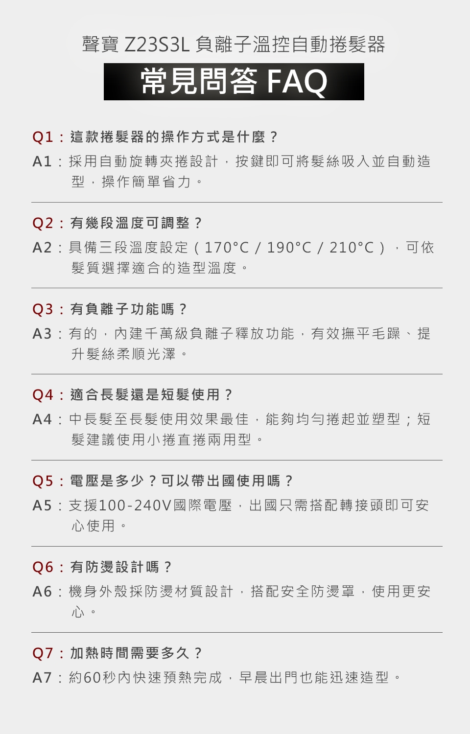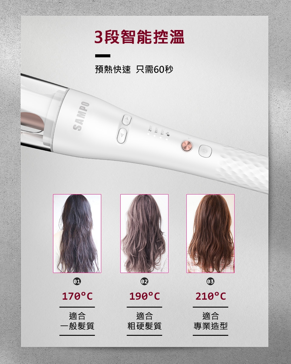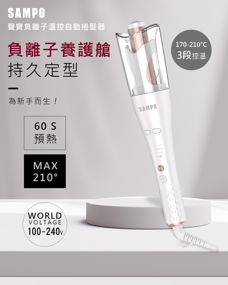 【聲寶SAMPO】國際電壓千萬負離子溫控自動捲髮器/捲髮棒/電棒捲(HC-Z23S3L)
