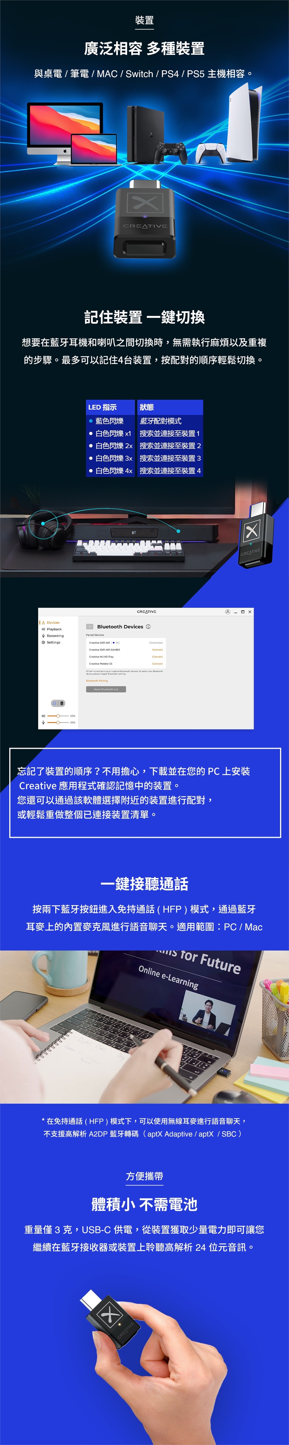 - 產品型號:Creative BT-W5 音訊藍牙發射器