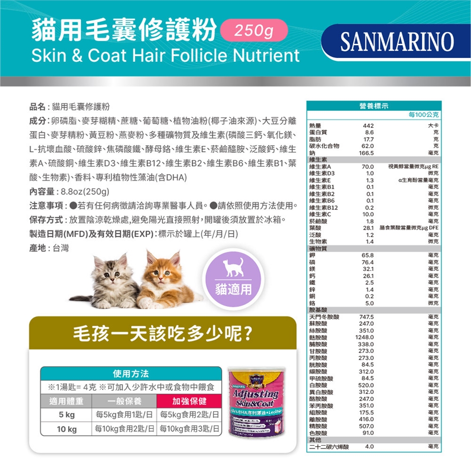 ● 品名 : SANMARINO聖馬利諾 貓用毛囊修護粉