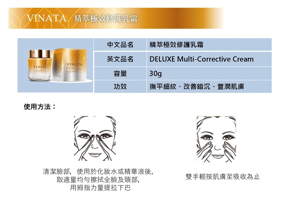 早晚清潔臉部或精華液,取適量以手指腹均勻塗抹臉部及頸部肌膚,至完全吸收即可。
