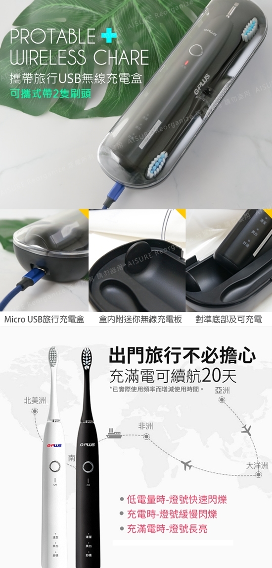 【GPLUS拓勤】G-PLUS 音波電動牙刷 (ETA001S) 獨家+贈原廠刷頭3入(共6入刷頭)