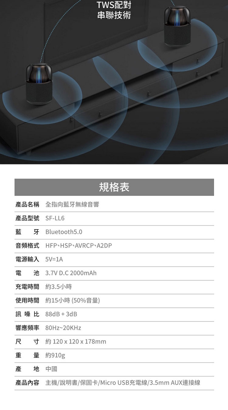★ TWS串聯配對,雙立體聲道