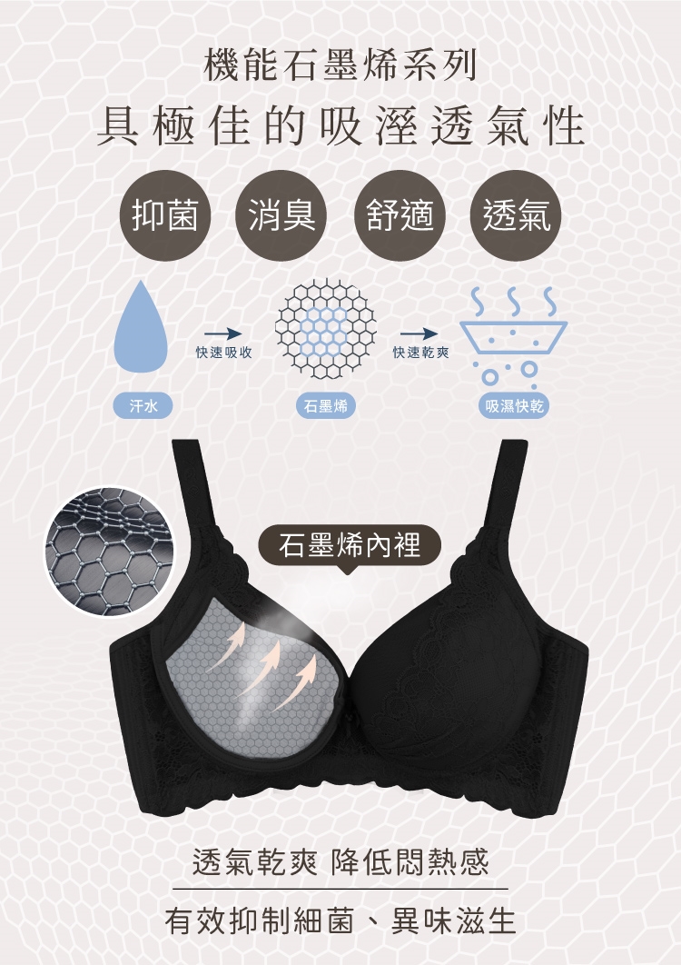 石墨烯纖維內裡,透氣抗菌保持肌膚乾爽清新