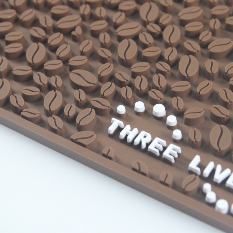 - 採用咖啡豆造型凸起四邊包圍設計,能有效將手沖壺溢出的水或是沖泡的咖啡保留在墊子內,避免弄汙桌面。