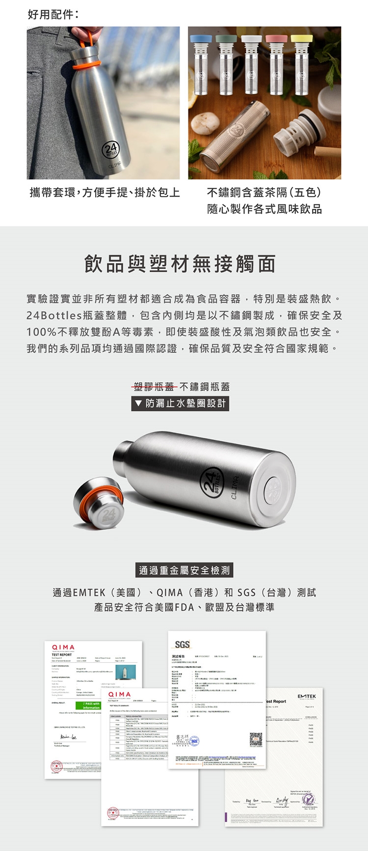 ◆ 瓶身+瓶蓋:皆使用食品級304不鏽鋼安全材質製造