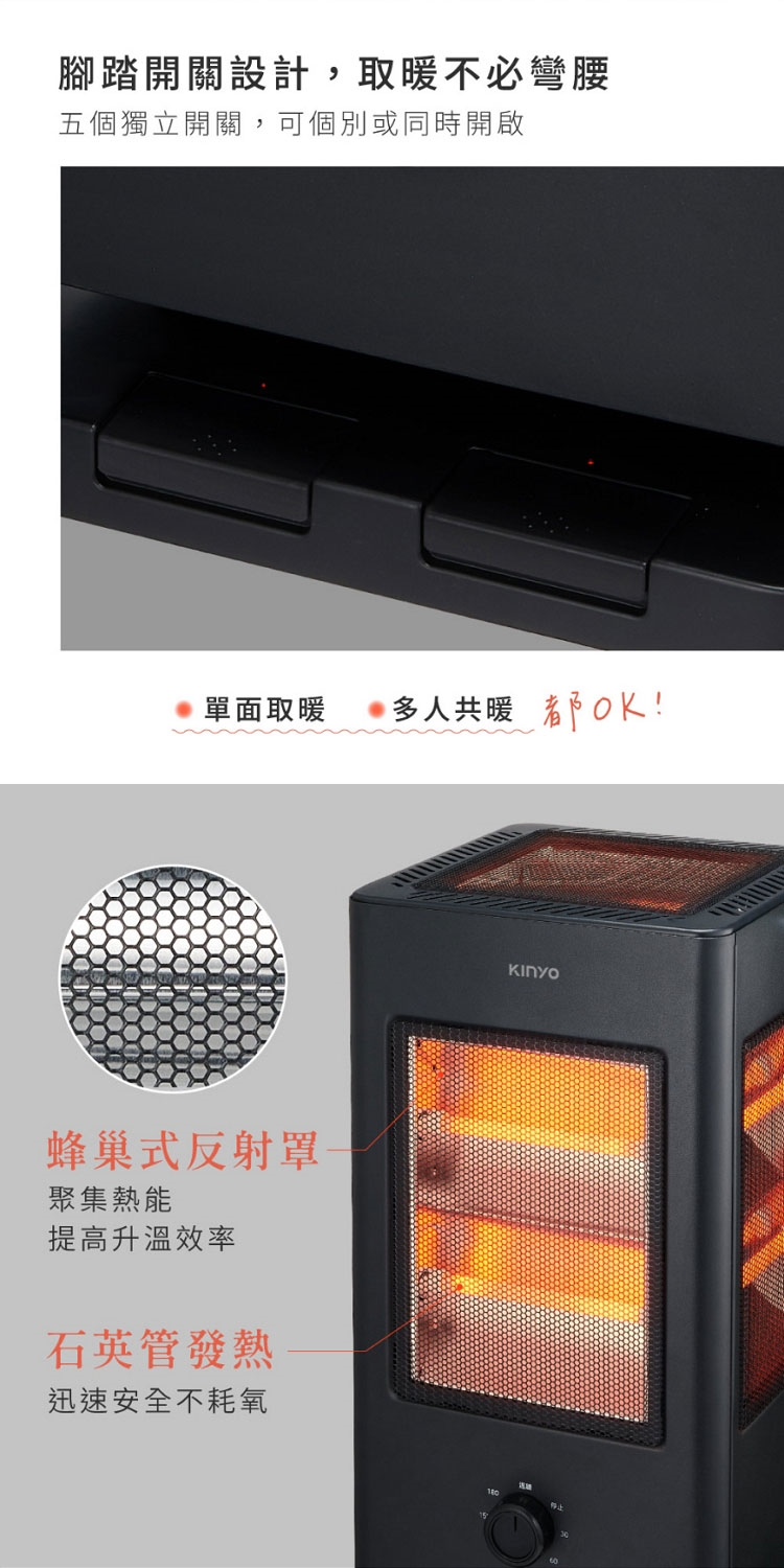 ◆ 取暖對流快,可讓四周或多人同時溫暖
