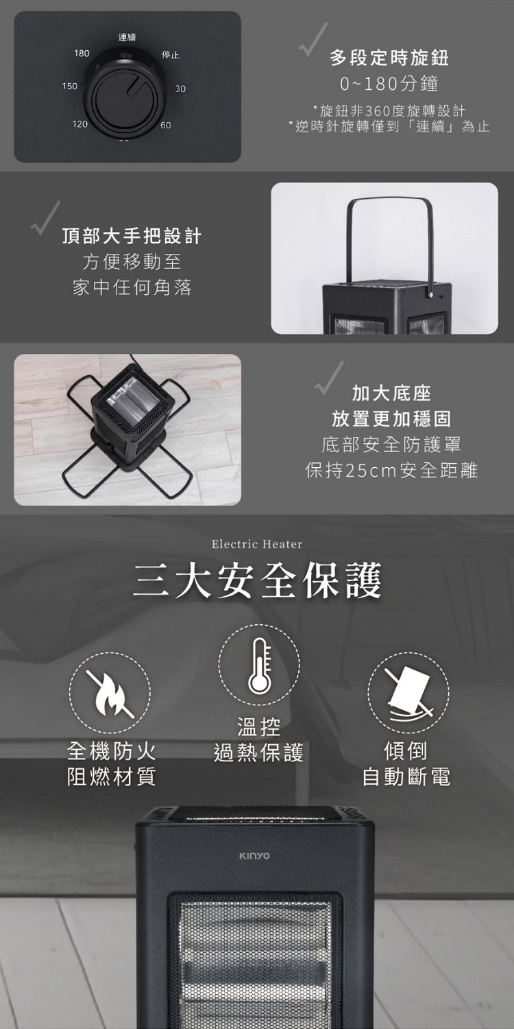 ◆ 傾倒自動斷電+溫控過熱保護+全機防火阻燃材質