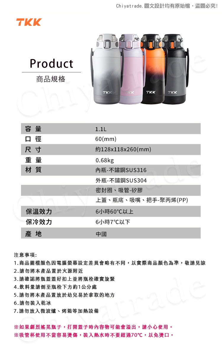 保溫效力:6小時60℃以上