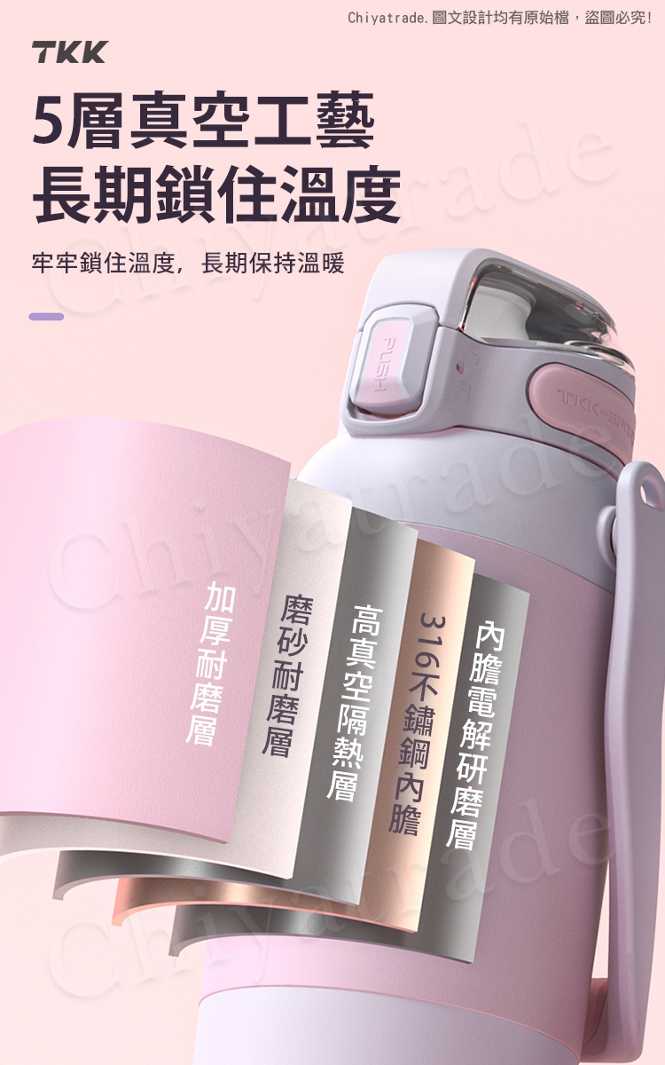 優質材料:由優質食品級316不鏽鋼內膽製成,耐腐蝕性強,安全健康。
