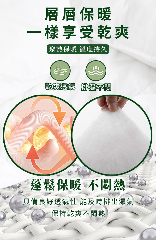 完美吸濕排汗功能調節肌膚溫度,入眠使您更加備感舒適、好像睡在雲朵上~