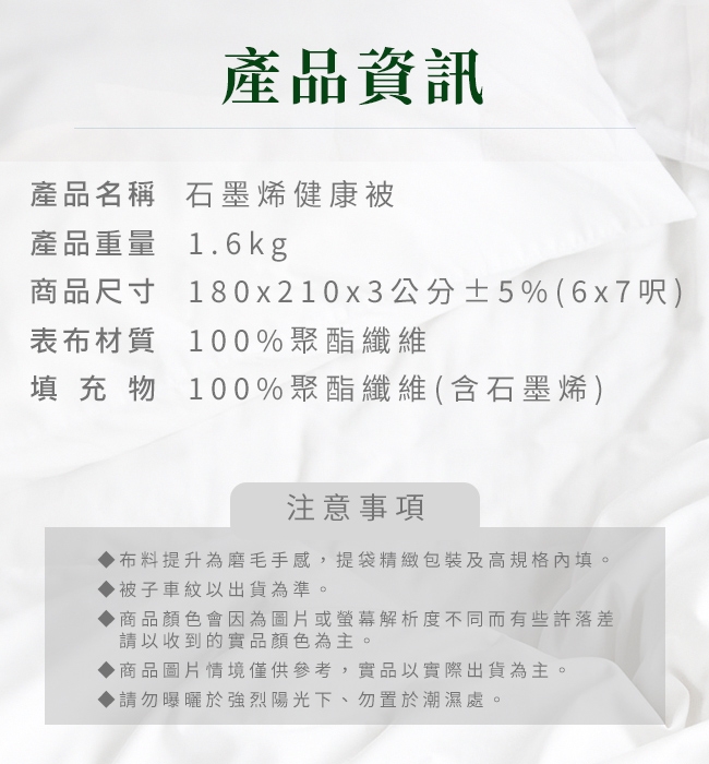 產品尺寸:180x210x3公分±5%(6x7呎)