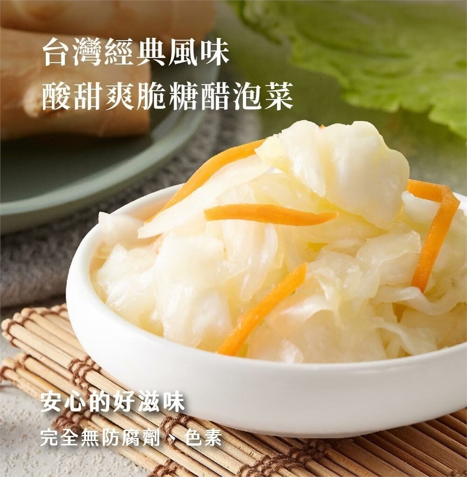 成分 : 高麗菜、水、醋(水、糯米)、糖、紅蘿蔔絲、鹽巴。