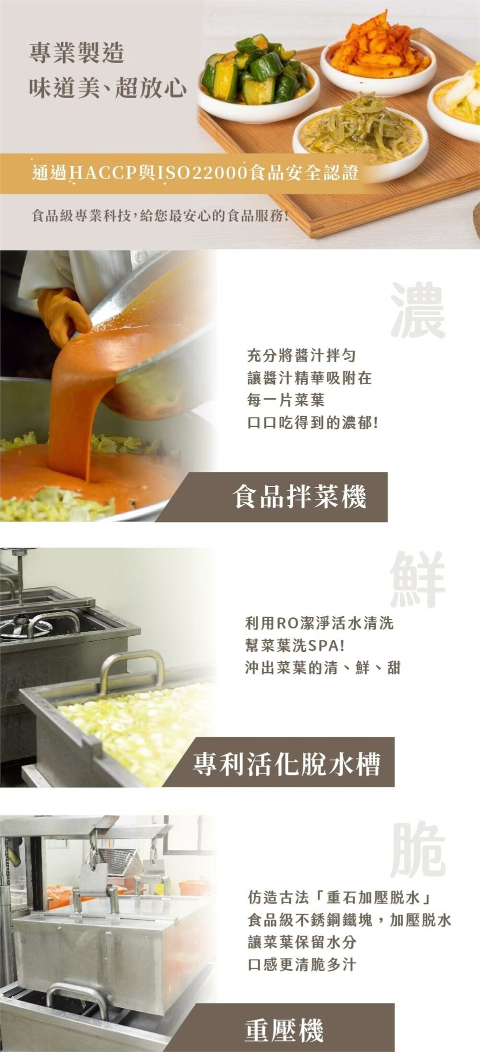 ★ 以蔬菜入醬,清甜回甘~~獨家「起死回生」、「黃金20圈」,堅持好工法,泡菜超爽脆!!