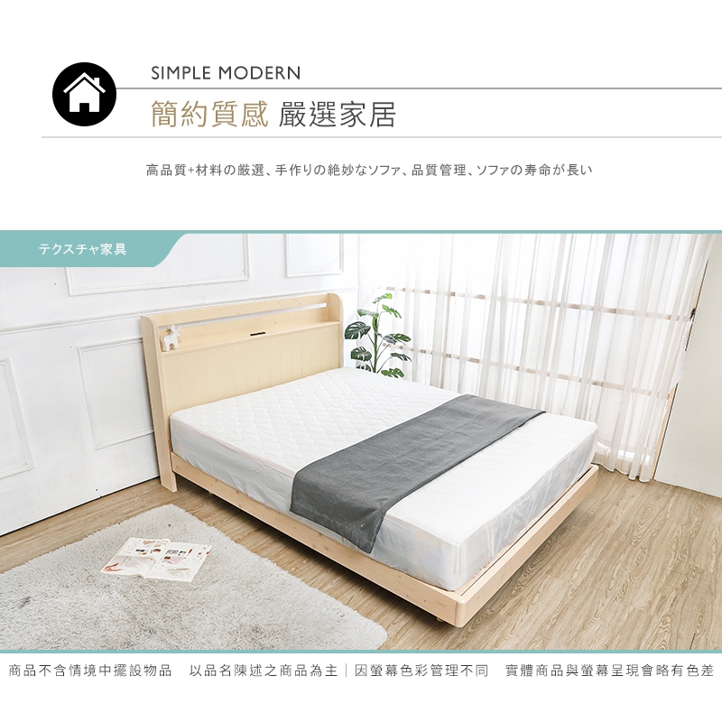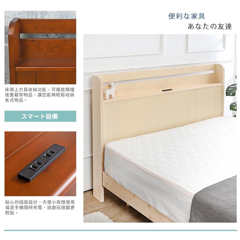 床頭貼心附有插座設計,讓手機充電更便利,追劇玩遊戲更輕鬆!