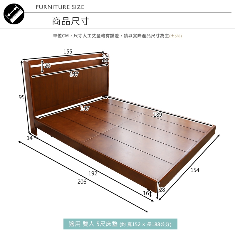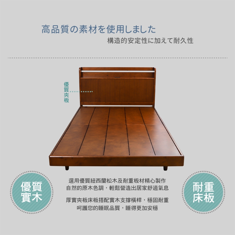 厚實夾板搭配實木支撐橫桿,整體穩固耐重,呵護您的睡眠品質!