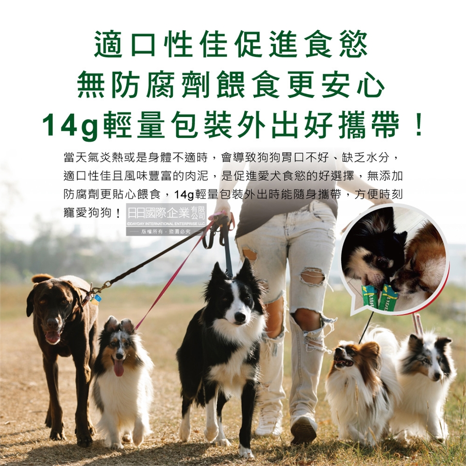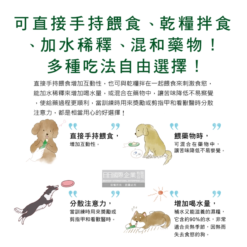 (9)應由飼主給予並全程陪同進食,請勿讓狗狗啃咬包裝避免導致誤食。
