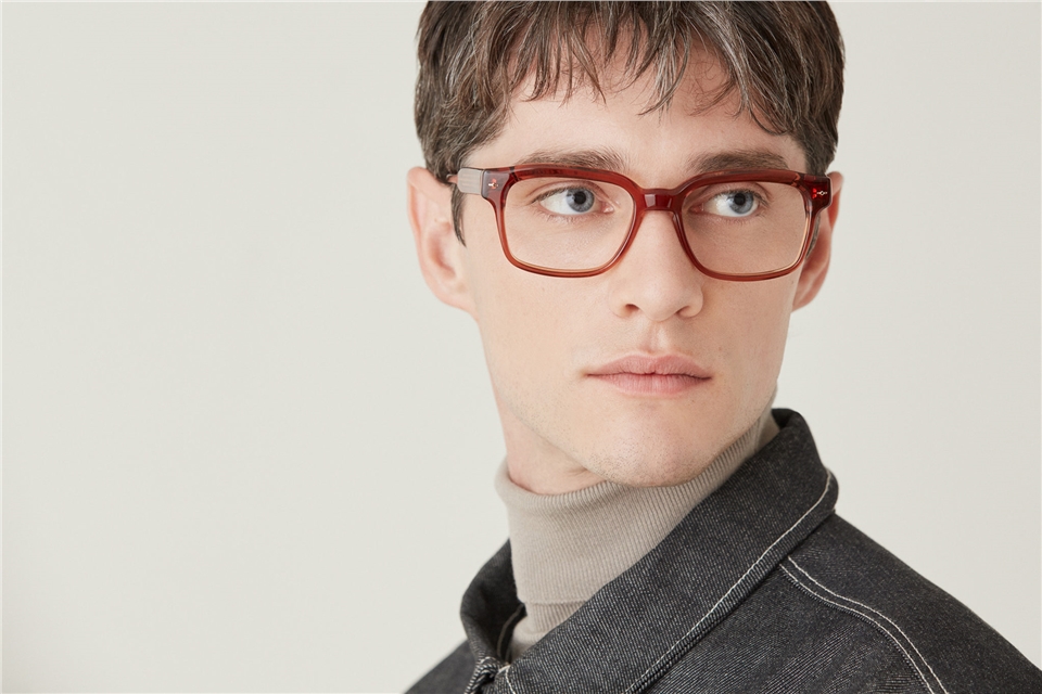矩形設計框/上半部分厚實輪廓,下半部細輪廓/優雅的金屬水平裝飾是品牌的特徵