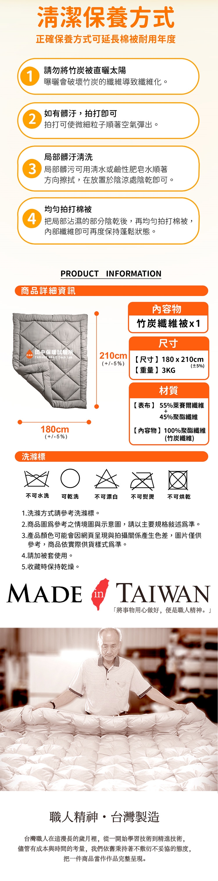 ※請勿將竹炭被直曬太陽:曝曬會破壞竹炭的纖維導致纖維化。