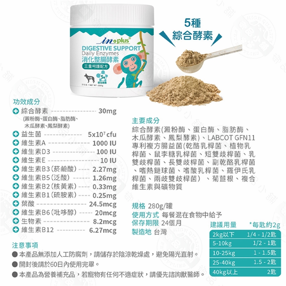 IN-Plus 犬用腸胃保健 消化整腸酵素三重呵護配方280克 狗保健品 幫助分解食物 改善排便 維持腸內健康 營養補給
