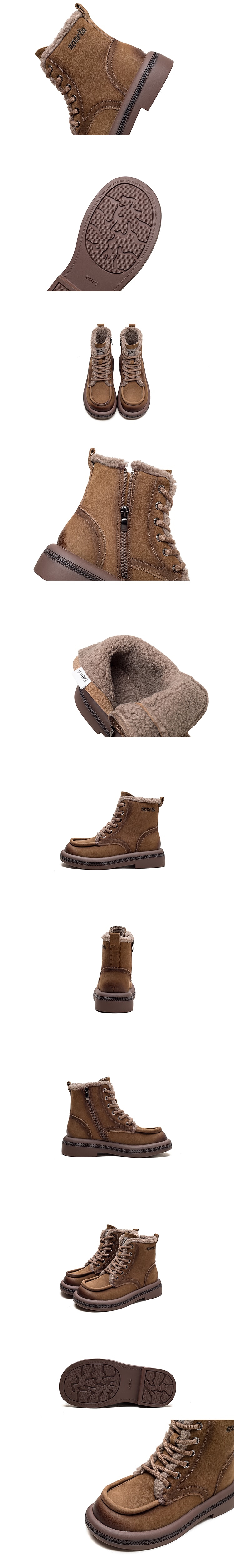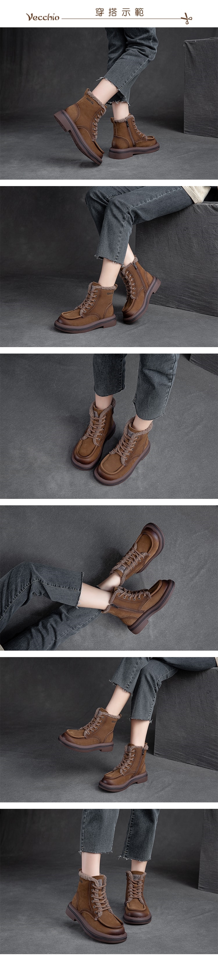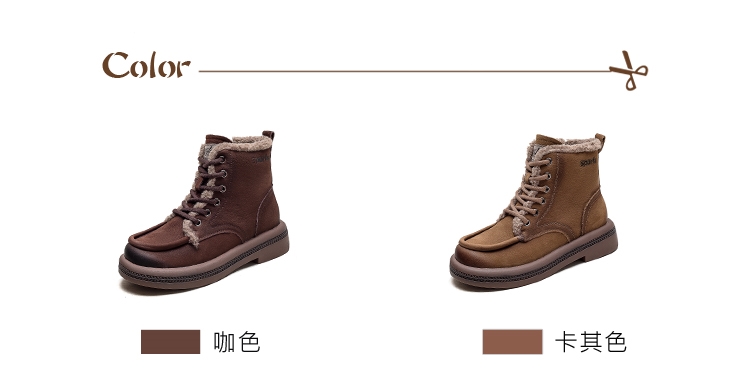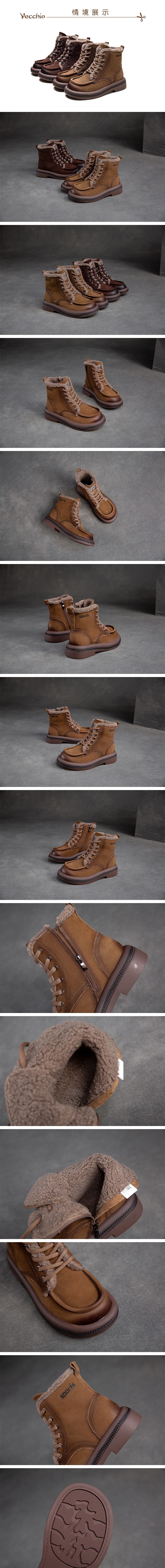 【VECCHIO】真皮復古保暖毛絨高筒休閒鞋/真皮頭層牛皮復古立體滾邊保暖毛絨高筒休閒鞋 女鞋 卡其