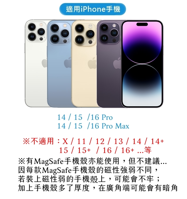 ●對應Magsafe磁吸式,讓安裝方便又快速且吸力強夠牢固。