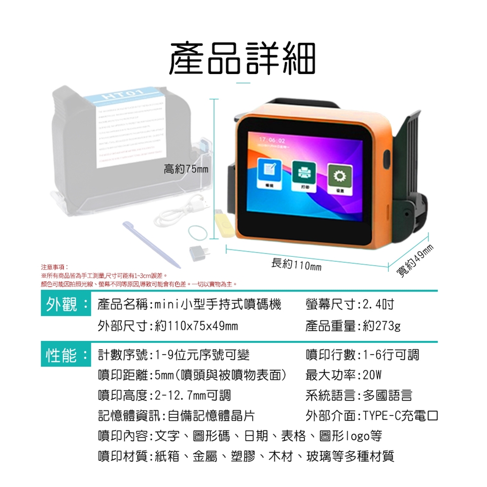 - 高精細度:600dpi高解析度,確保噴碼效果清晰細緻。