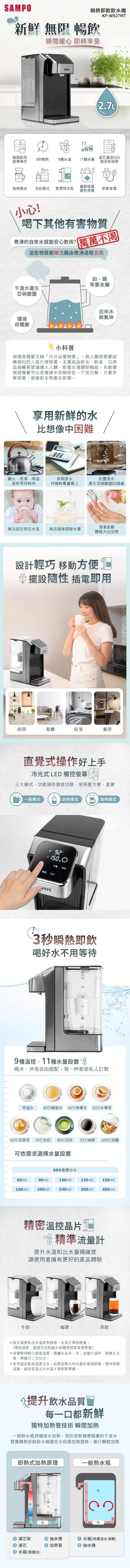 SAMPO聲寶 2.7L瞬熱即飲飲水機 KP-WB27MT