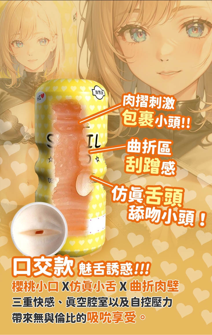 口交款:櫻桃小口,仿真小舌,極致吸吮。