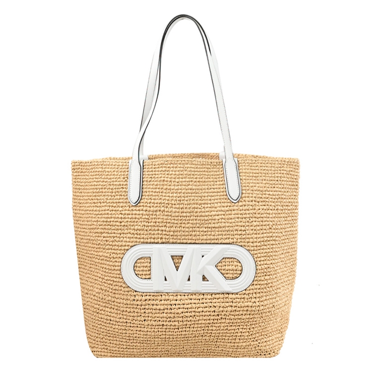 MICHAEL KORS 品牌(簡稱MK)成立於 1981 年是美國設計師同名的品牌設計獨特又時尚,近來深受年輕族群及輕熟女仕們的喜愛;專櫃商品,此款ELIZA系列肩背草編包,採用質感草編皮革邊飾搭配經典大LOGO,大容量收納空間,可放A4文件、筆電等隨身物品,簡單又有型,釋放都會簡約風格。