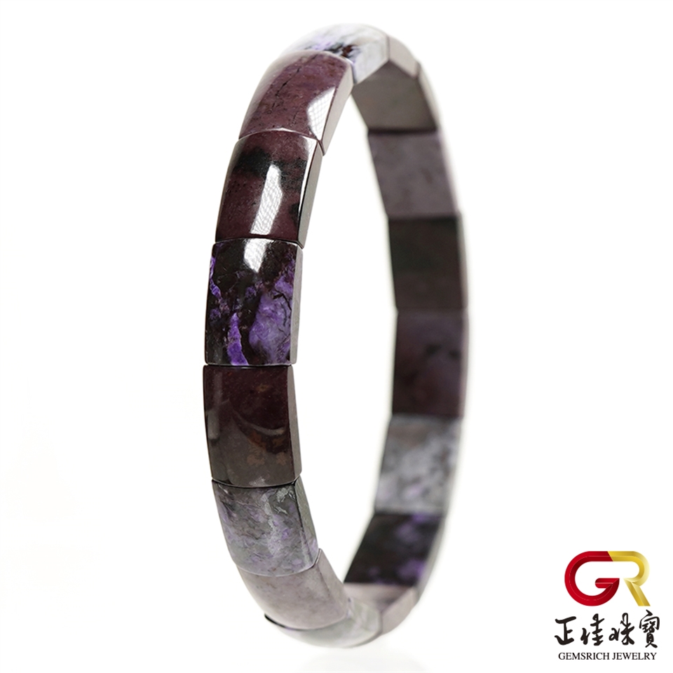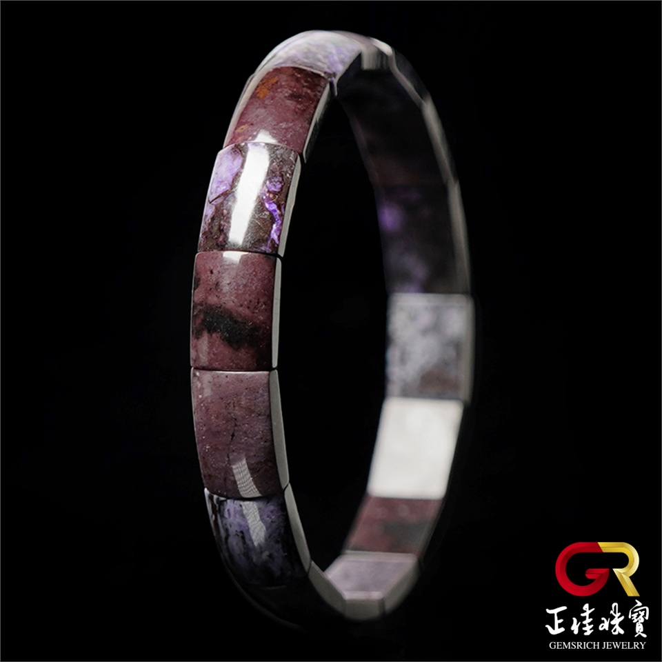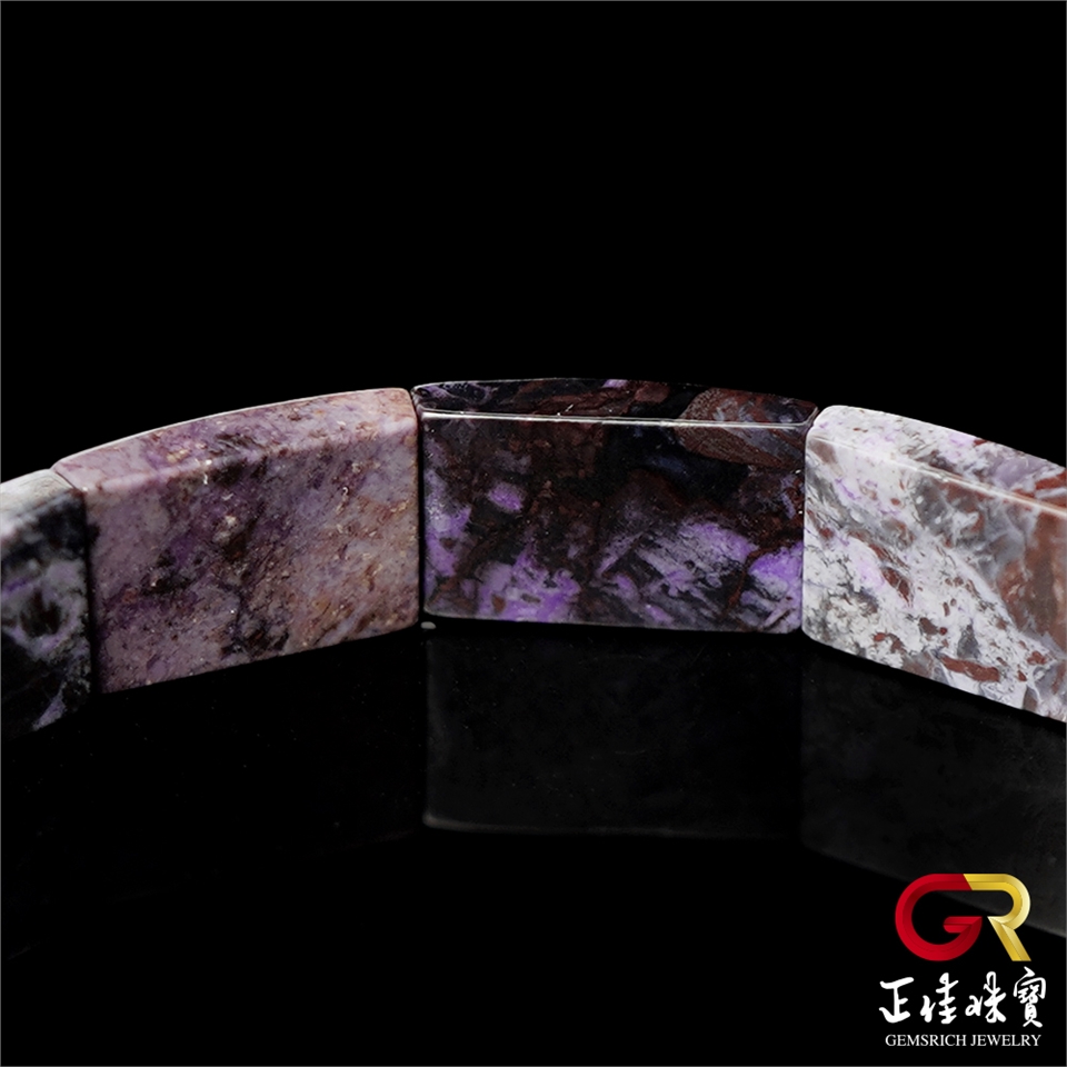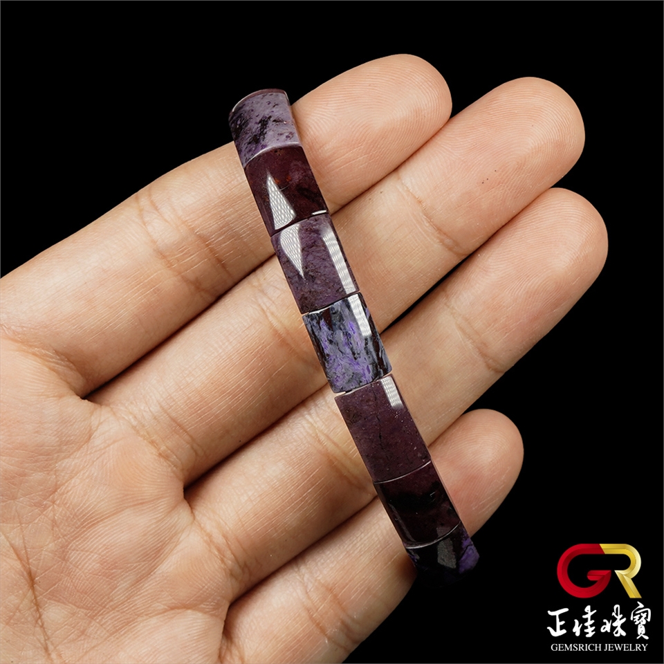 舒俱萊石(Sugilite)是一種罕見的寶石,以其獨特的紫色調聞名。這種礦石因富含錳而呈現紫色,並常與精神和情感治療相關,被認為能促進內在和平與靈性覺醒。舒俱萊石的顏色範圍從淺紫到深紫不等,並可能帶有黑色或白色紋路。這種寶石通常被用來製作珠寶或療癒石,受到寶石收藏家和靈性追求者的喜愛。