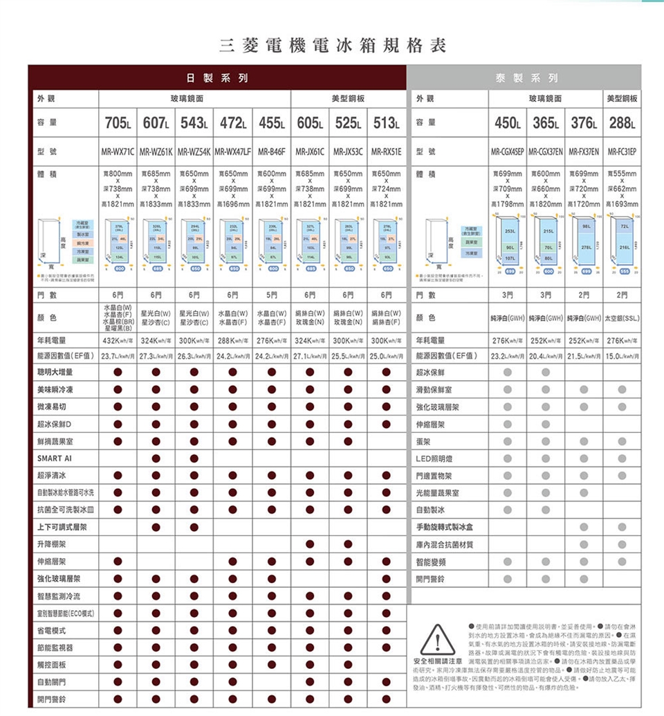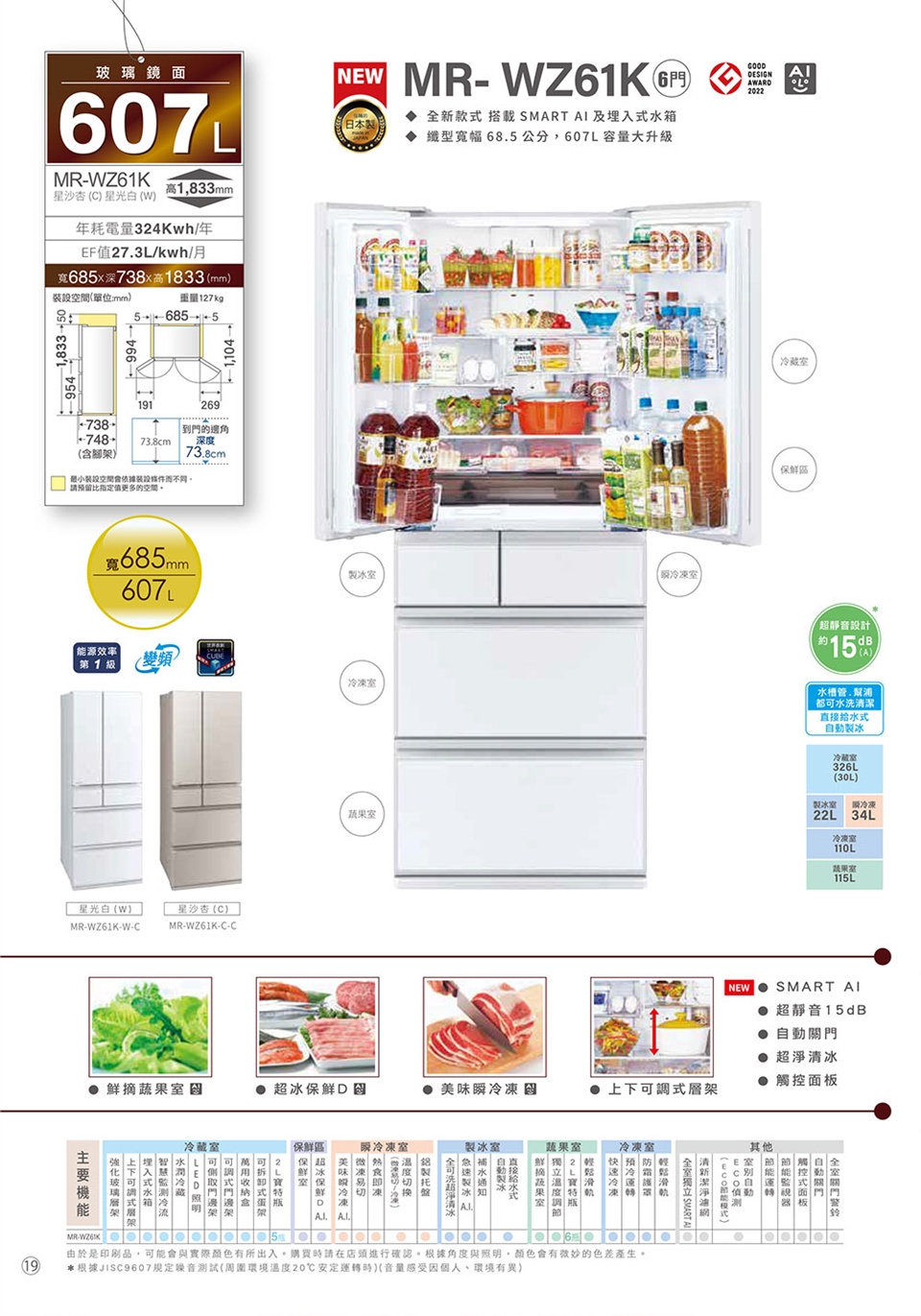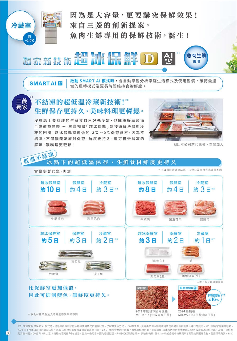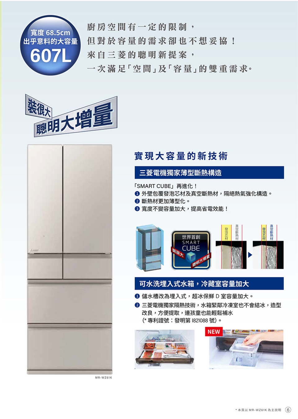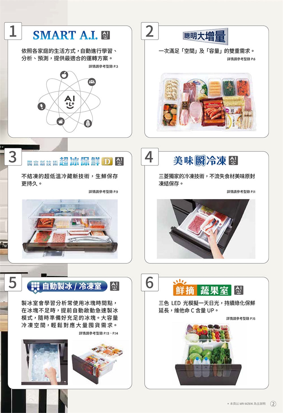 MITSUBISHI三菱607公升日本製變頻六門電冰箱MR-WZ61K
