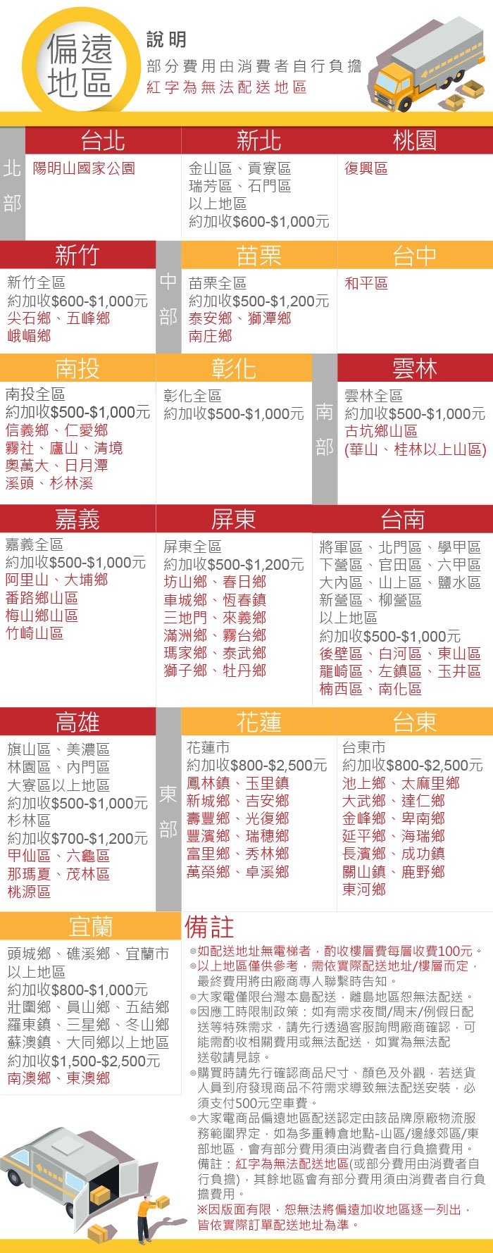 ◆運送區域:限台灣本島可送達之處,外島與偏遠地區請恕無法運送~