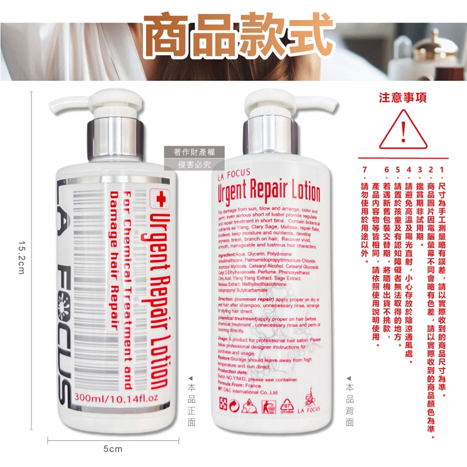 (10)本品僅用於護理中後段髮尾,請勿接觸於頭皮,或用於用途之外。