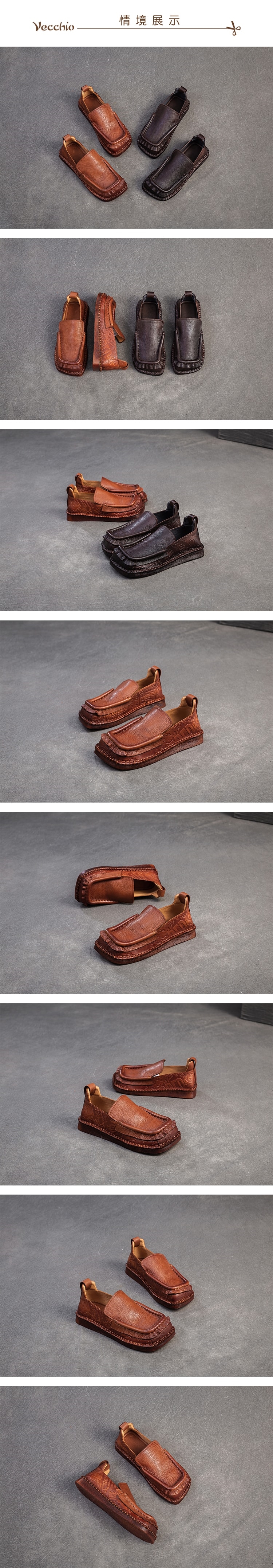 【VECCHIO】全真皮方頭平底樂福鞋/全真皮頭層牛皮手工立體滾邊方頭平底樂福鞋 女鞋 棕