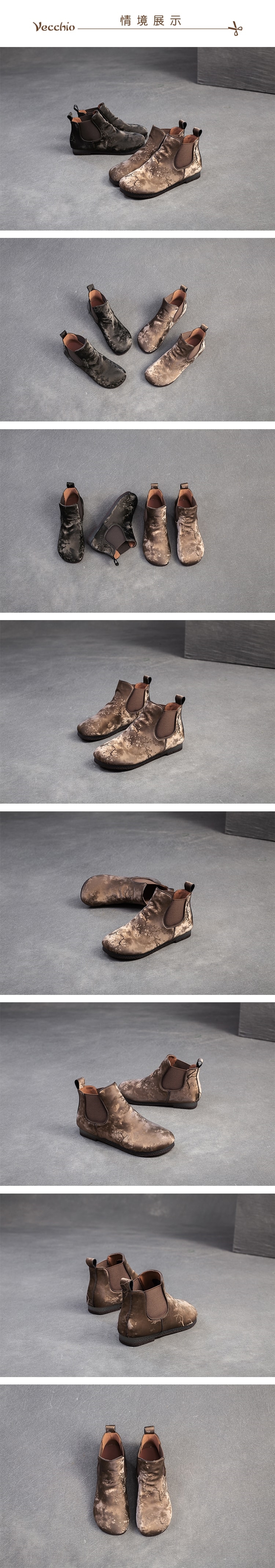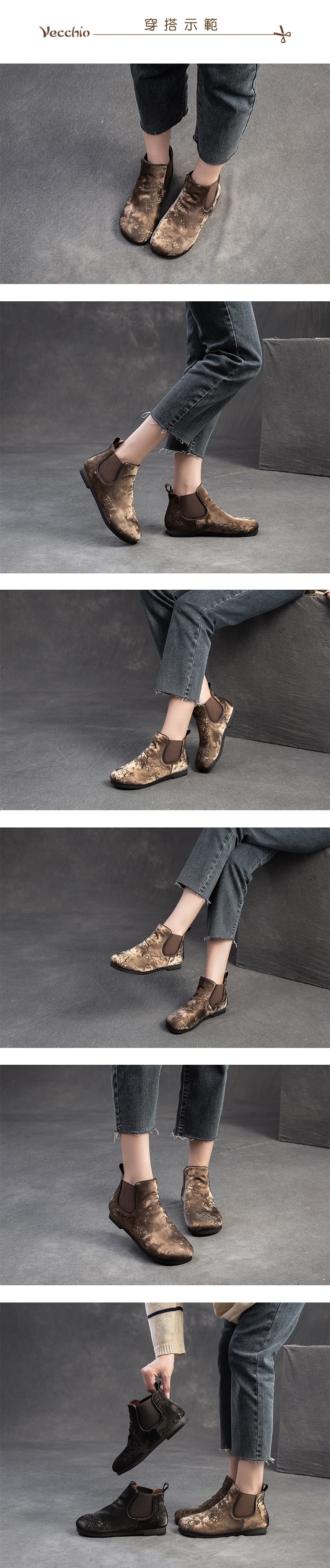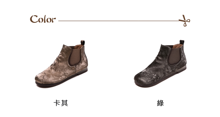 【VECCHIO】復古絲綢面料個性切爾西短靴/復古絲綢面料個性民族風切爾西短靴 女鞋 卡其