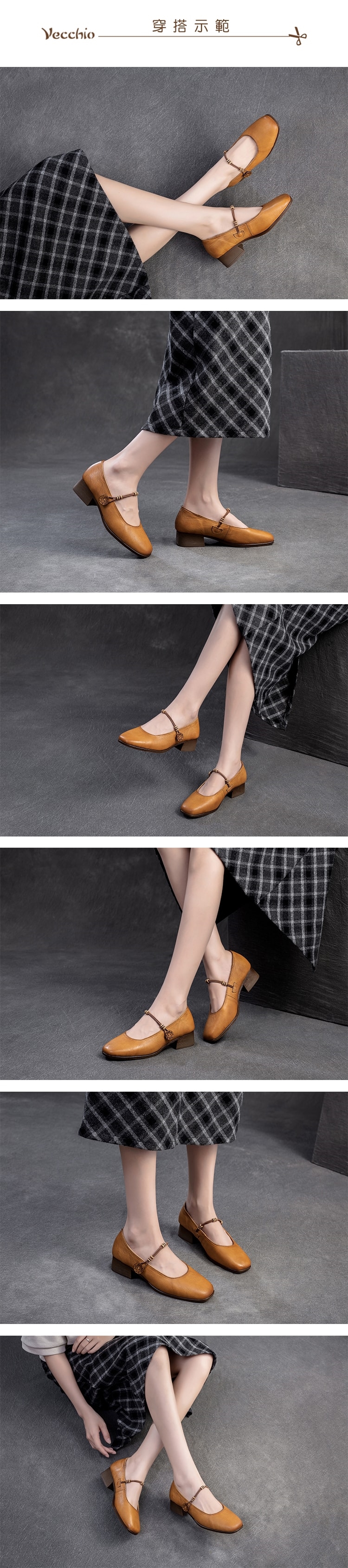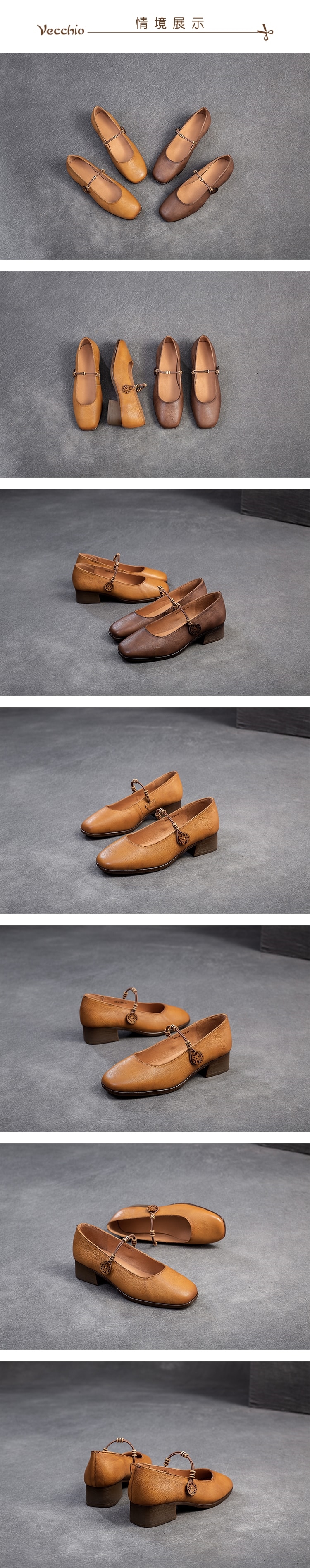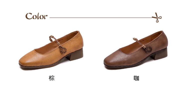 【VECCHIO】全真皮線繩木扣粗跟鞋/全真皮頭層牛皮線繩木扣設計粗跟鞋 女鞋 棕