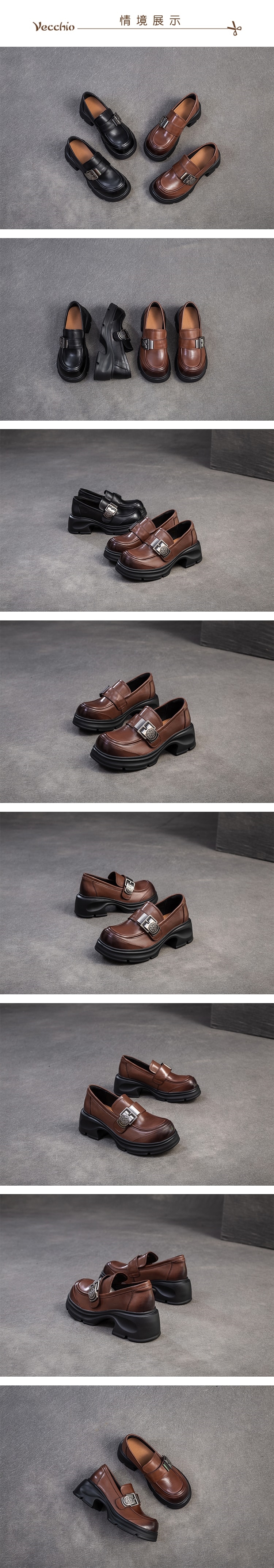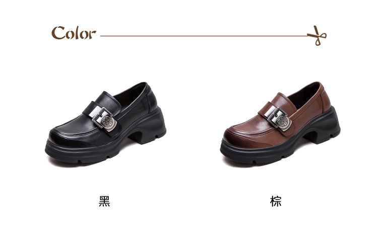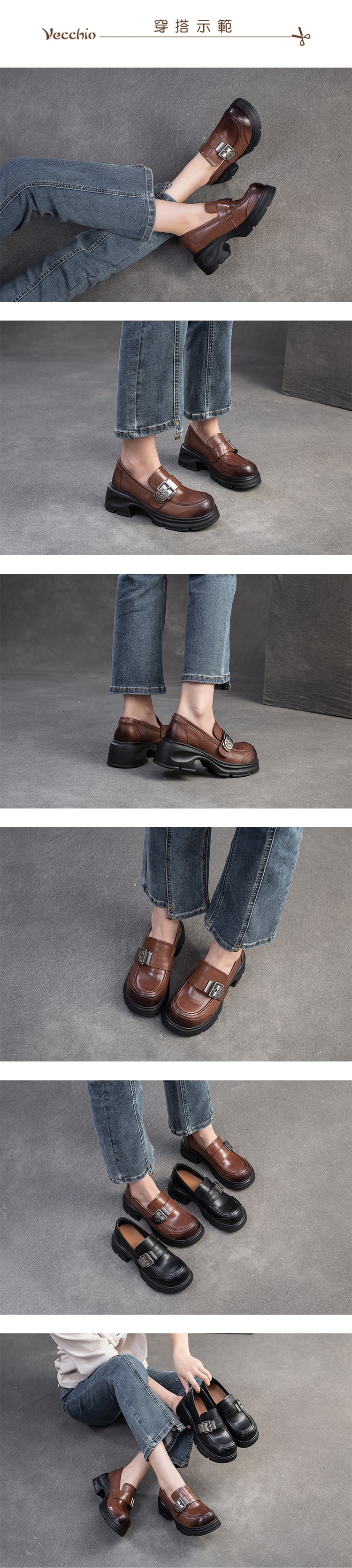 【VECCHIO】真皮舒適金屬釦粗跟樂福鞋/真皮頭層牛皮舒適寬楦金屬釦設計粗跟樂福鞋 女鞋 棕