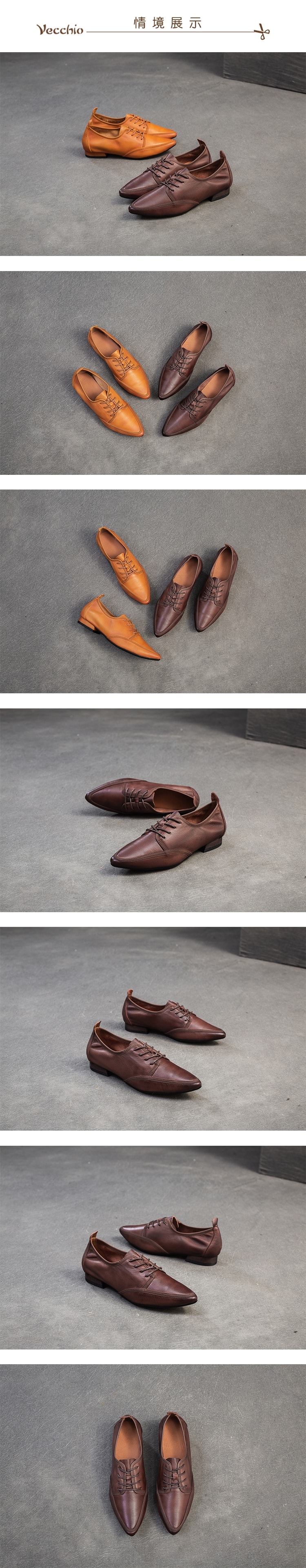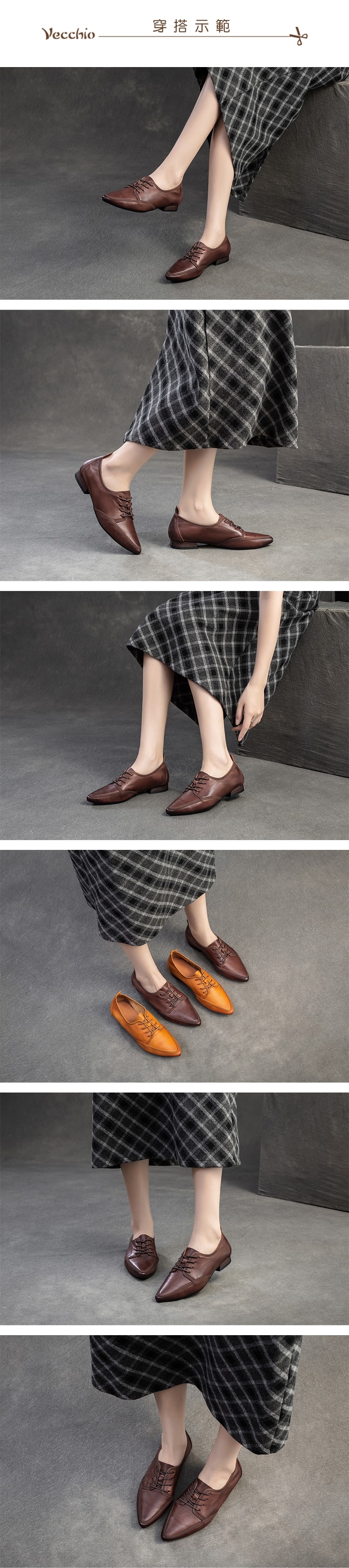 【VECCHIO】全真皮經典尖頭繫帶低跟鞋皮鞋/全真皮頭層牛皮復古經典尖頭繫帶低跟鞋 皮鞋 女鞋 咖