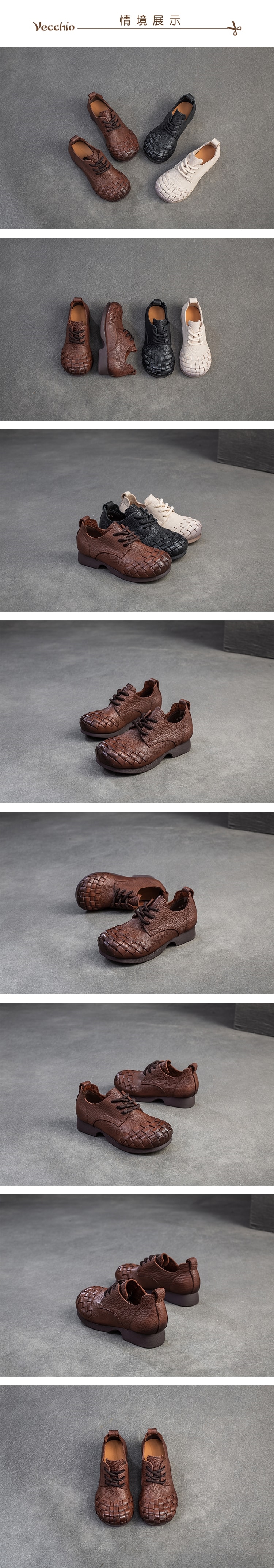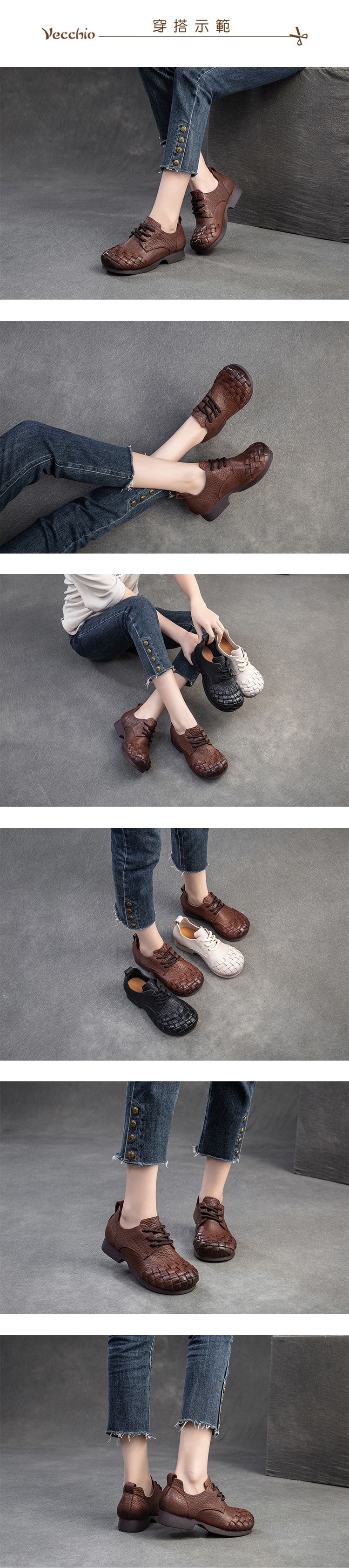 【VECCHIO】真皮編織拼接繫帶休閒鞋/真皮頭層牛皮編織拼接繫帶寬楦舒適休閒鞋 女鞋 棕