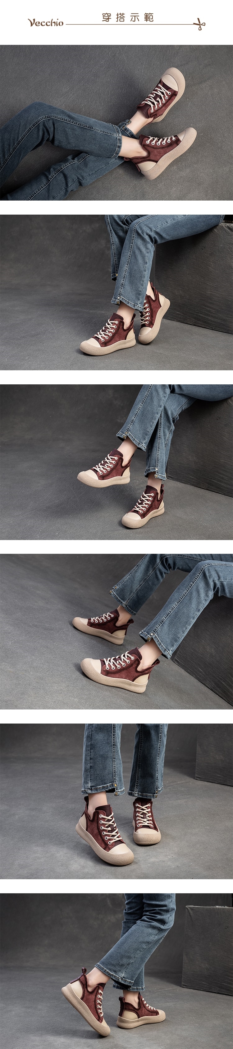 【VECCHIO】全真皮擦色時尚厚底休閒鞋/全真皮頭層牛皮復古擦色時尚厚底休閒鞋 女鞋 紫