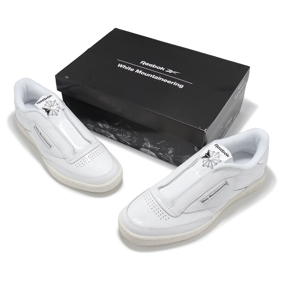 * 與日本戶外品牌-WHITE MOUNTAINEERING 聯手打造,以經典 Club C 為基礎,去除鞋帶設計,鞋側印有品牌字樣。