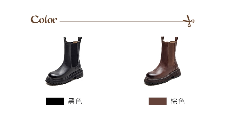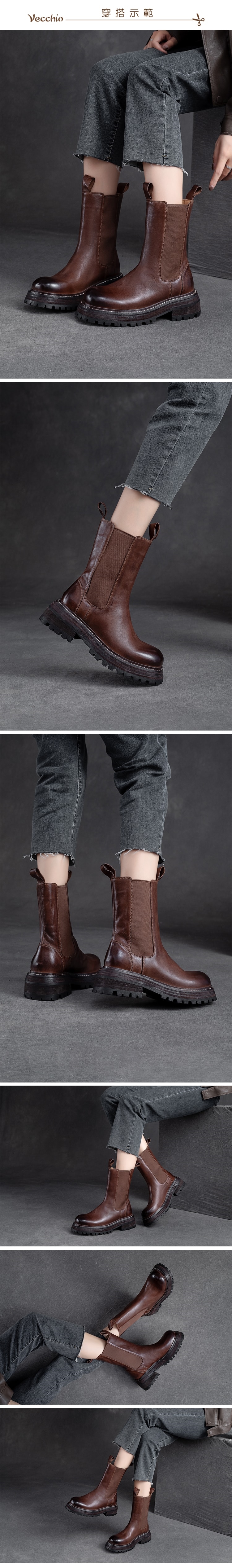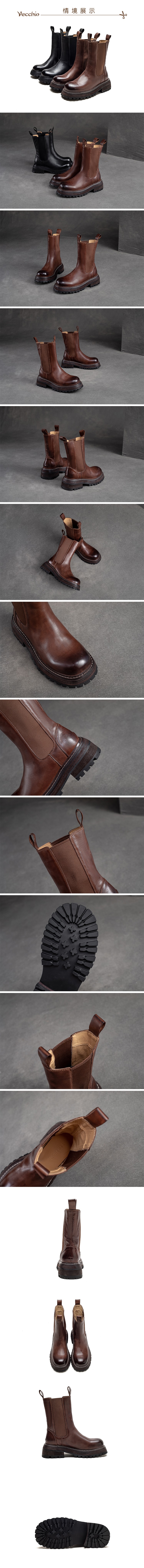 【VECCHIO】真皮厚底煙筒靴/真皮頭層牛皮復古百搭厚底煙筒靴 女鞋 棕