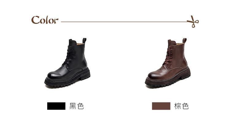 【VECCHIO】真皮繫帶休閒短靴/真皮頭層牛皮復古百搭繫帶休閒短靴 女鞋 黑