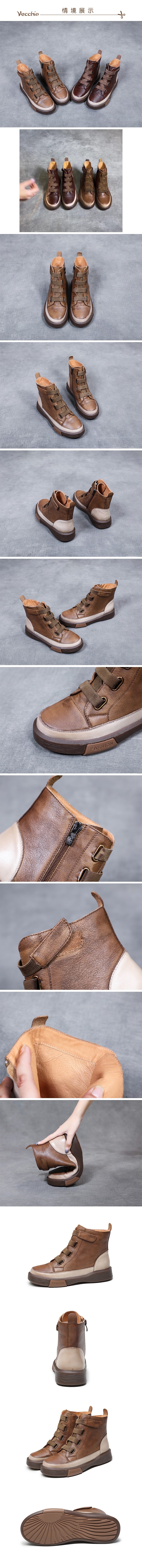 【VECCHIO】全真皮寬版魔鬼粘鞋帶馬丁靴/全真皮頭層牛皮復古寬版魔鬼粘鞋帶設計個性馬丁靴 女鞋 卡其