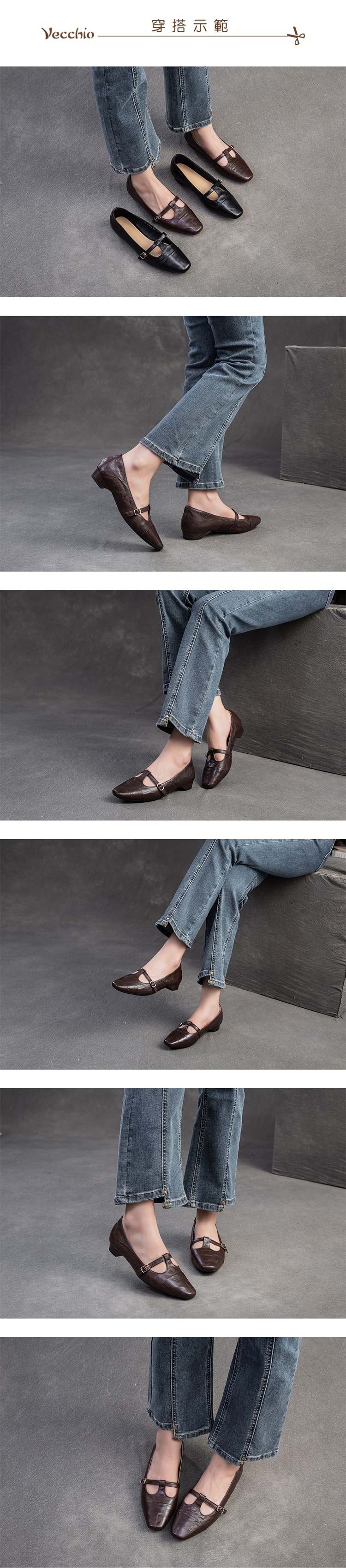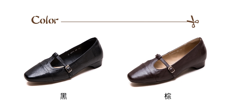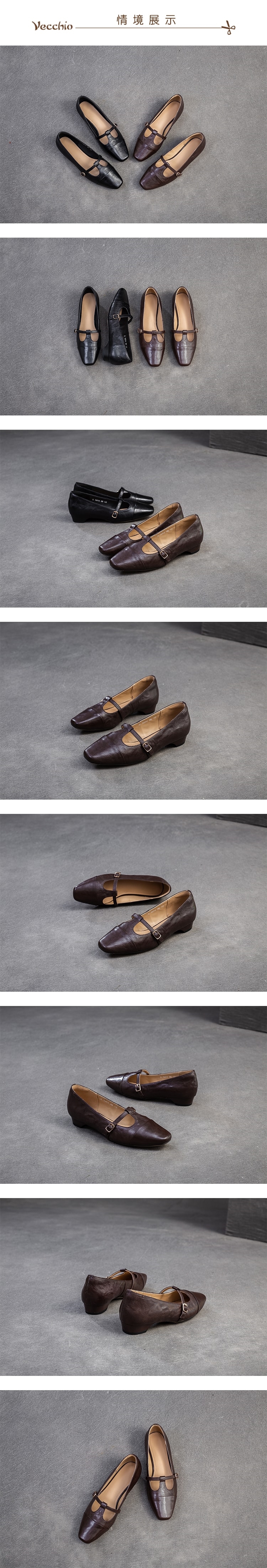 【VECCHIO】真皮羊皮T字帶淺口方頭低跟鞋/真皮細膩羊皮T字帶淺口小方頭復古低跟鞋 女鞋 棕