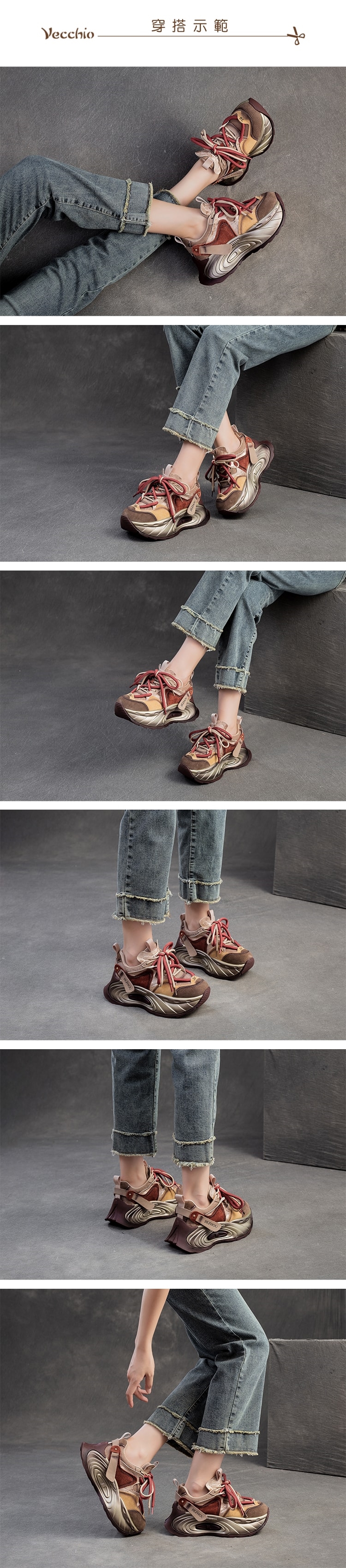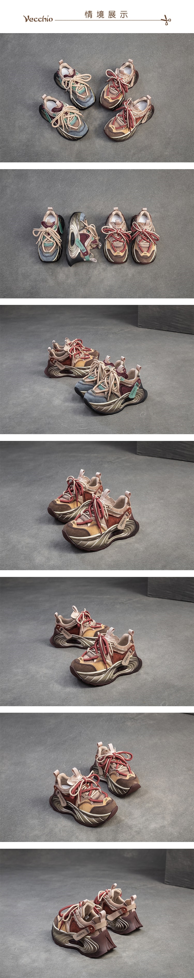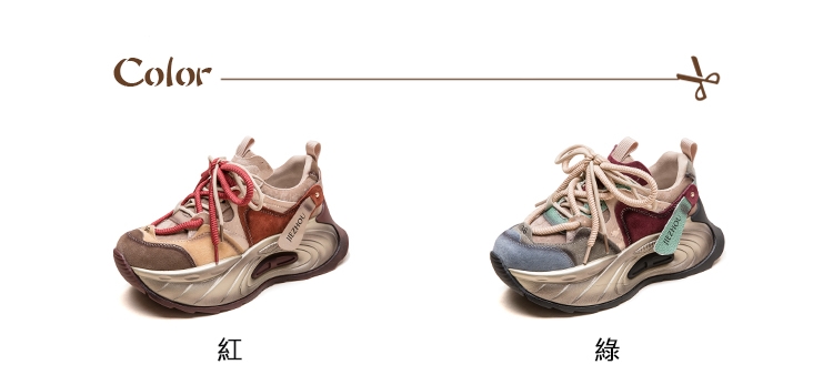 【VECCHIO】真皮異材質拼接厚底老爹鞋/真皮頭層牛皮異材質繽紛皮革拼接厚底老爹鞋 女鞋 紅